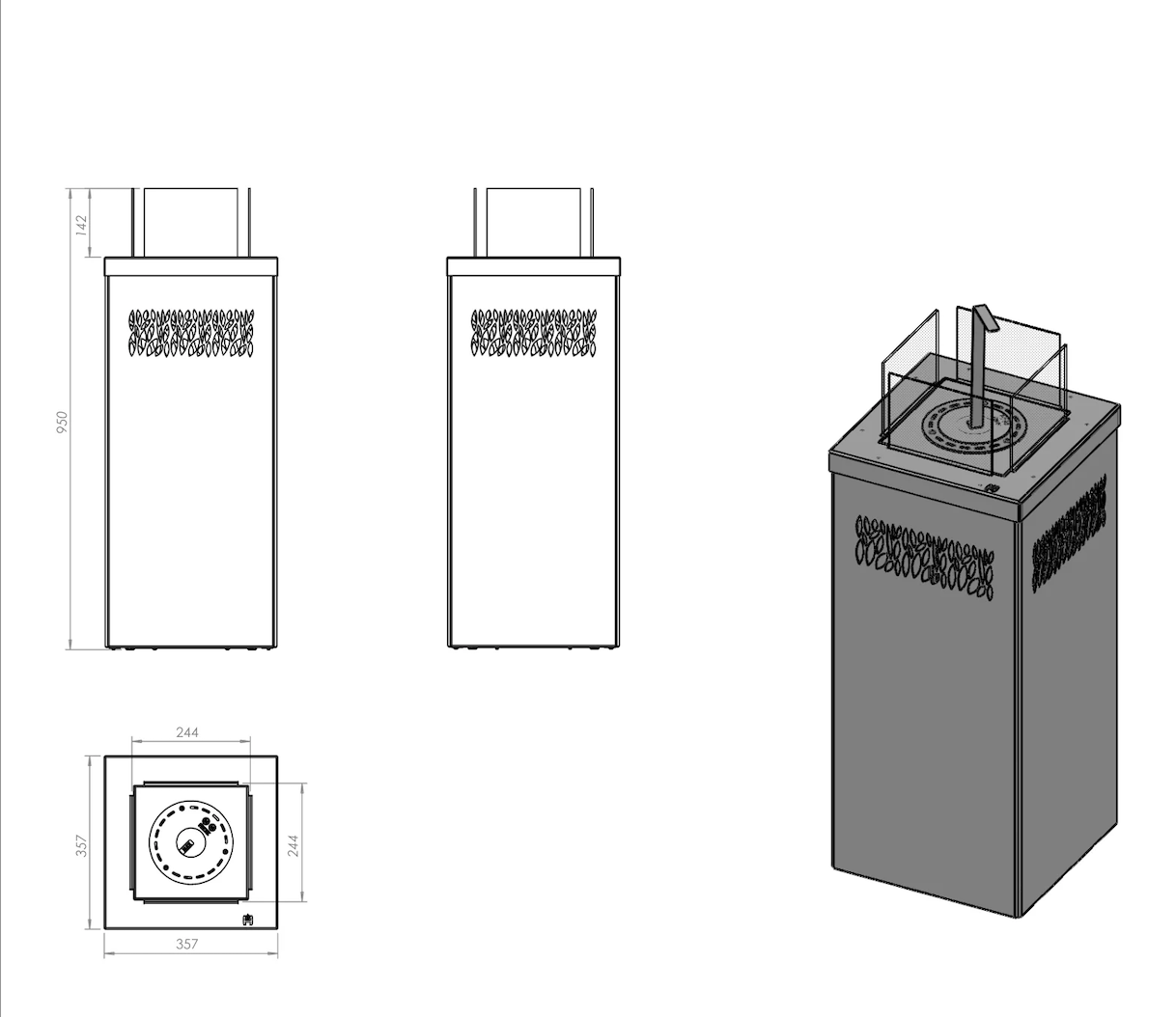 Biokrb vytvořený na bázi zahradních topidel, který se díky stabilní základně skvěle hodí pro vnitřní i venkovní použití. Tyto typy zařízení jsou vynikajícím řešením pro náhradu tradičního krbu nebo topidla na dřevo či plyn. Jedinečná konstrukce bude vyhovovat modernímu i klasickému prostředí. Díky realizovaným konstrukčním řešením lze „tančící plameny“ obdivovat z každé strany.