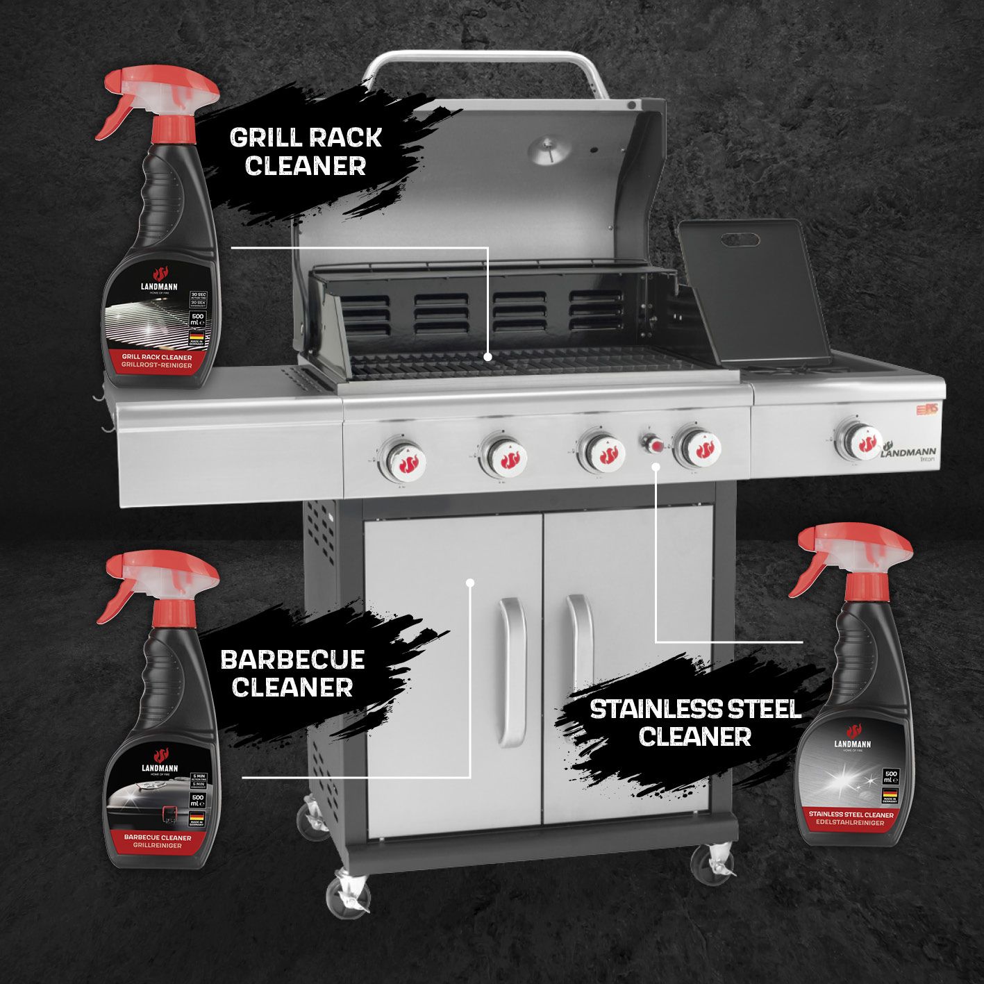 Znečištěný povrch plynového, dřevěného nebo elektrického grilu stačí nastříkat ze vzdálenosti cca 25 cm, nechat cca 5 minut působit a rozpuštěné nečistoty odstranit měkkou houbičkou nebo měkkým kartáčkem.