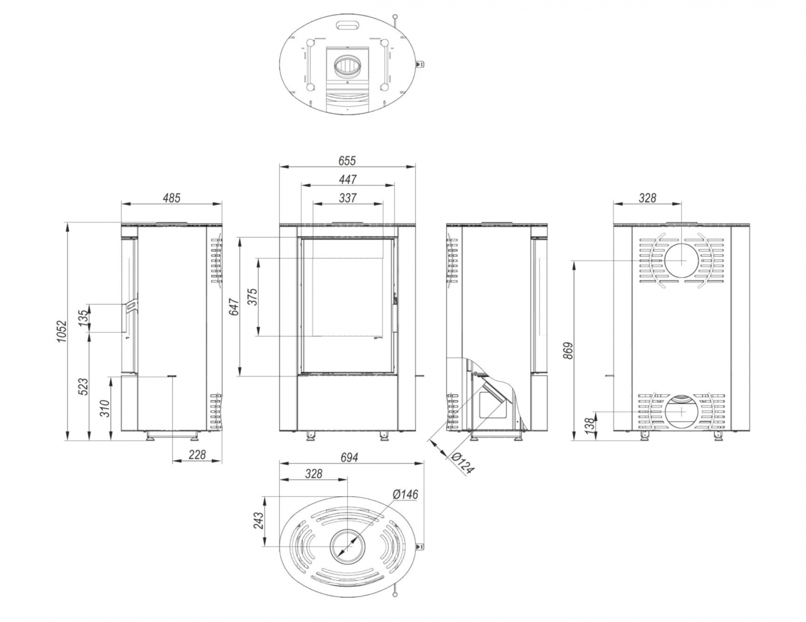 - Možnost připojení kouřovodu z horní nebo zadní části kamen
