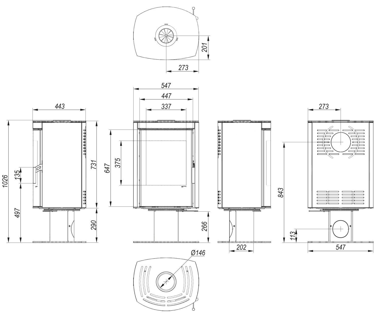 - Možnost připojení kouřovodu z horní nebo zadní části kamen