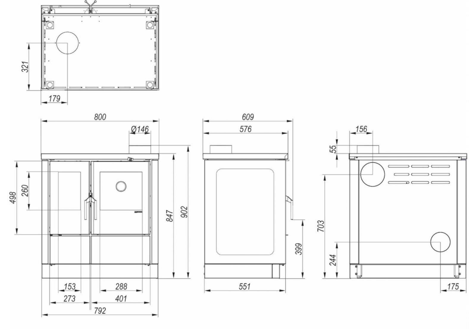 - sporák možno objednat v zrcadlově-obráceném provedení (dvířka topeniště na pravé straně)