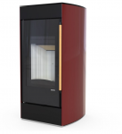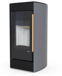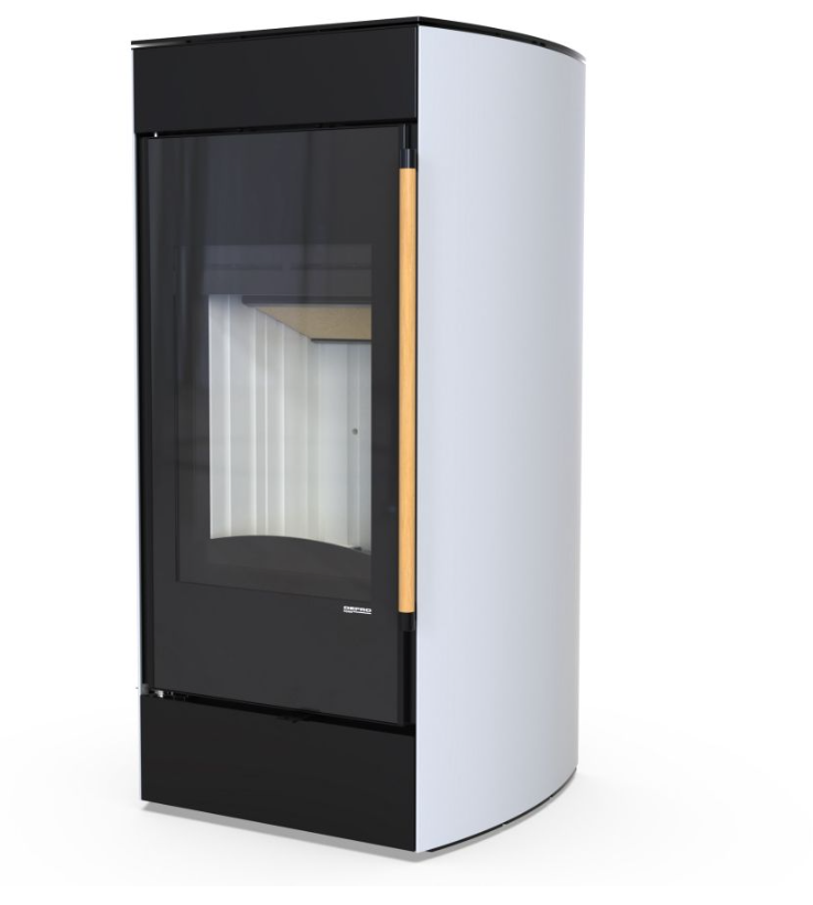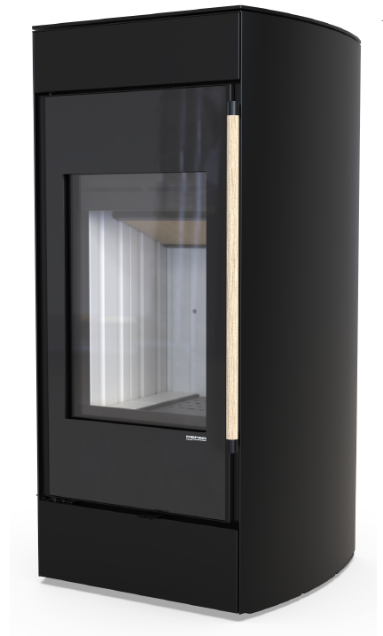 Krbová kamna je možné objednávat v několika barevných variantách. Pomocí krásného dubového madla můžete HYDROFIRE otevírat systémem otevírání dvířek ve stylu „lednice“. Na fotografii vyobrazené dubové madlo je za příplatek. V základu je madlo černé. Topeniště je vystláno designovými armovanými žárobetony.