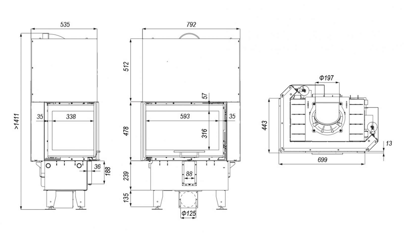 • výsuvný systém dveří možno servisovati z topeniště
