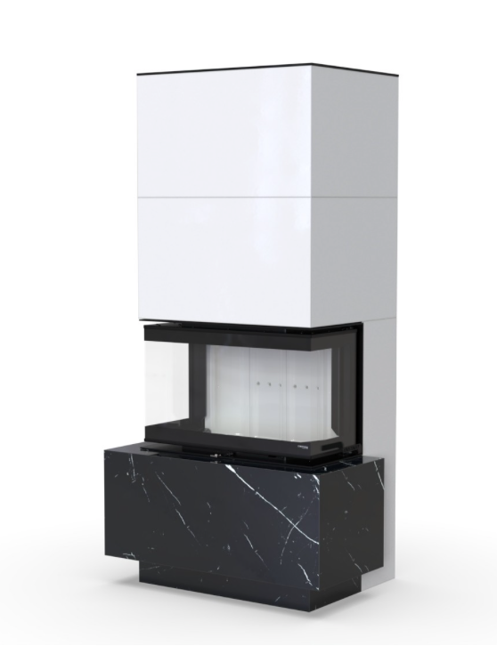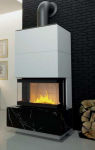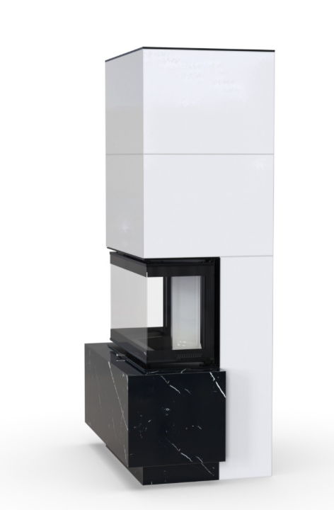 estetickými vlastnostmi. Klasická kombinace černé s bílou nebo šedou v obložení krbu