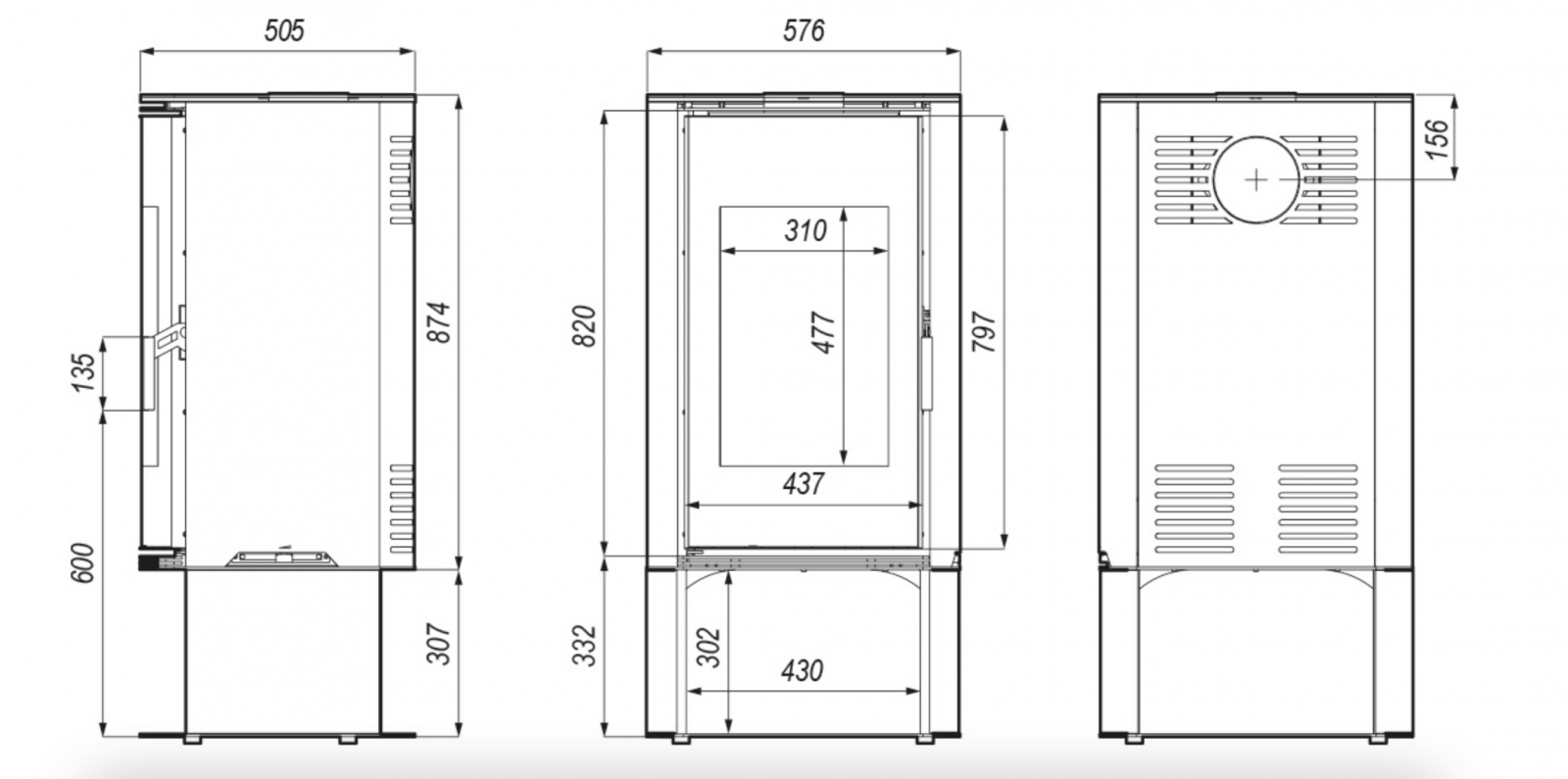 Možnost přívodu vzduchu do krbu ze spodní a zadní části topidla. Topidlo může být horizontálně vyrovnáno od 20 mm do 40 mm (kromě topidla TOP).