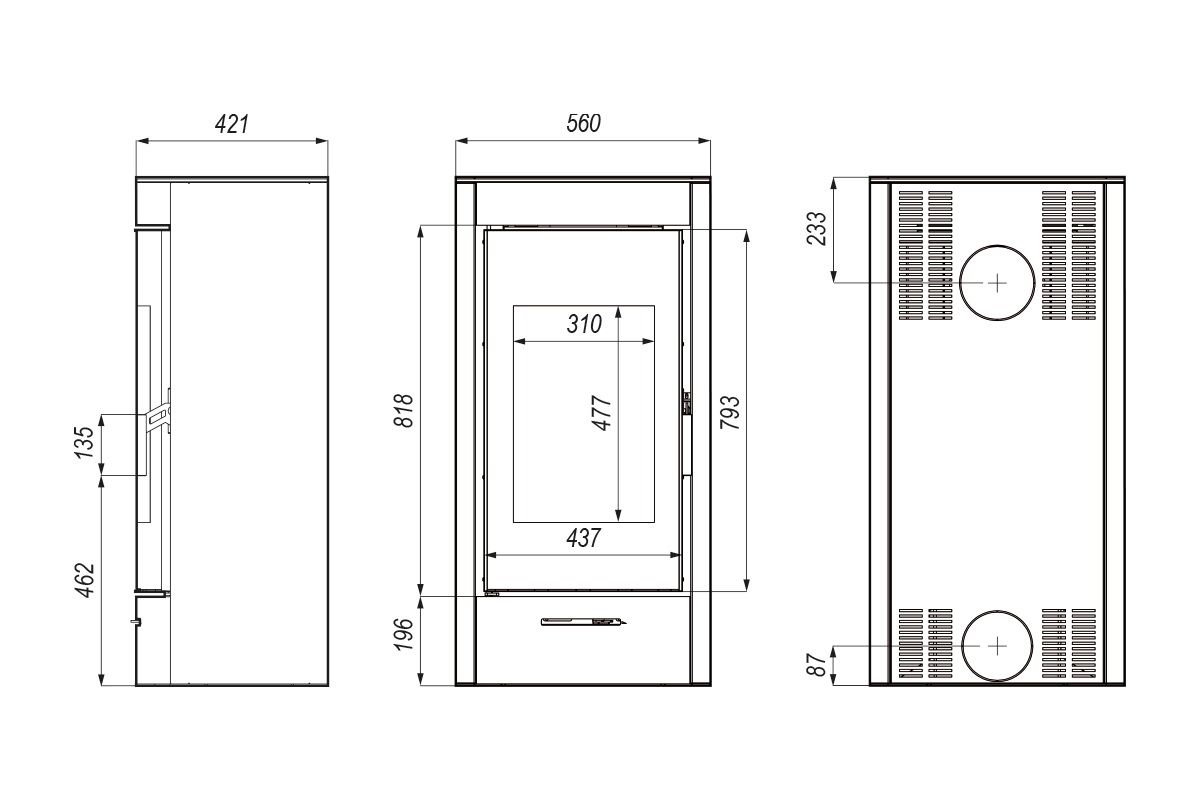 - centrální přívod vzduchu možno napojit ze zadní nebo spodní části kamen