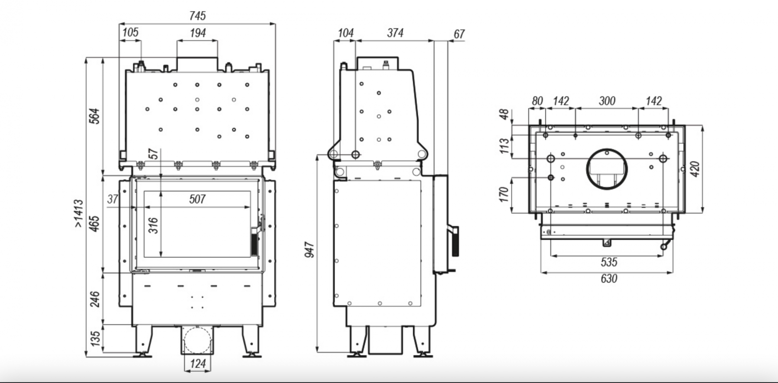 HITZE ALBERO 90x41.G-D krbová vložka s teplovodním výměníkem