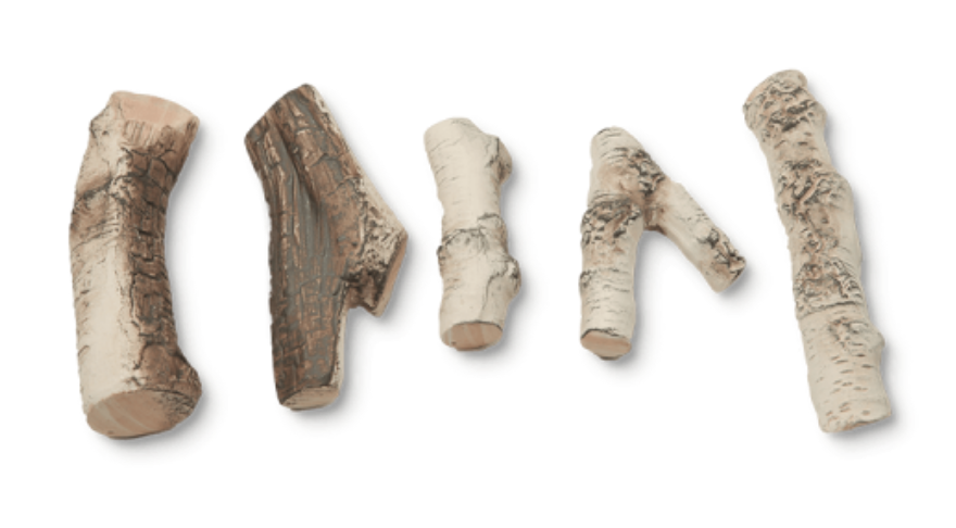 Nabídka HITZE zahrnuje několik různých vzorů imitujících různé druhy dřeva. Sada obsahuje sadu dekorativních polen skládající se z 5 keramických prvků imitujících skutečné dřevo. Uživatel obdrží hotovou sadu, která vyžaduje pouze umístění dřeva do spalovací komory biokrbu. Tyto typy dekorativních prvků poskytují nádherné vizuální dojmy tím, že imitují skutečné dřevo. Keramická polena se neopotřebovávají a lze je používat po celou dobu životnosti biokrbu, ve kterém jsou instalována.
