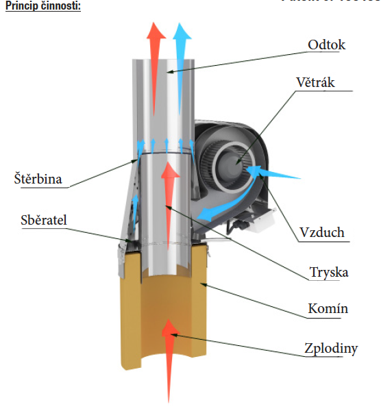 - stabilizace komínového tahu při nepravidelných poryvech větru