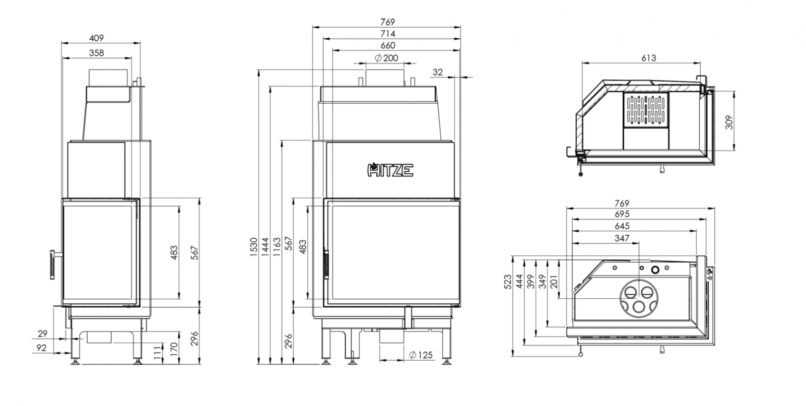 Vzduchová clona poskytuje efekt "čistého skla". Snadné čištění je možné díky litinovému roštu s vyjímatelným popelníkem.INSTALACE: