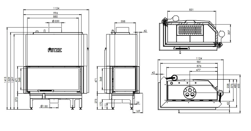 - Speciálně navržená zadní část tělesa umožňuje přívod sekundárního vzduchu do horní části pece. Umožňuje zvýšit účinnost zařízení spalováním výfukových plynů.