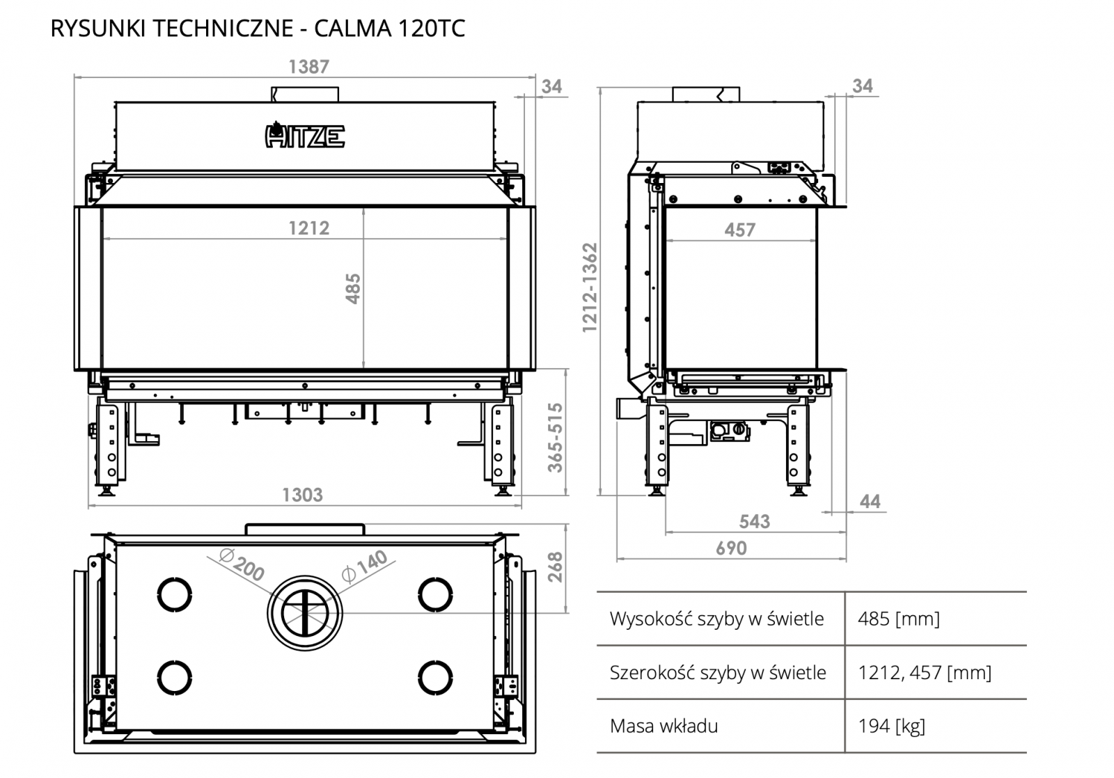 Plynové krby CALMA jsou dostupné ve třech verzích. První má rozměry 80 cm x 50 cm, druhý 65 cm x 80 cm, přičemž rozměry největšího krbu jsou 120 cm x cm 50 cm.