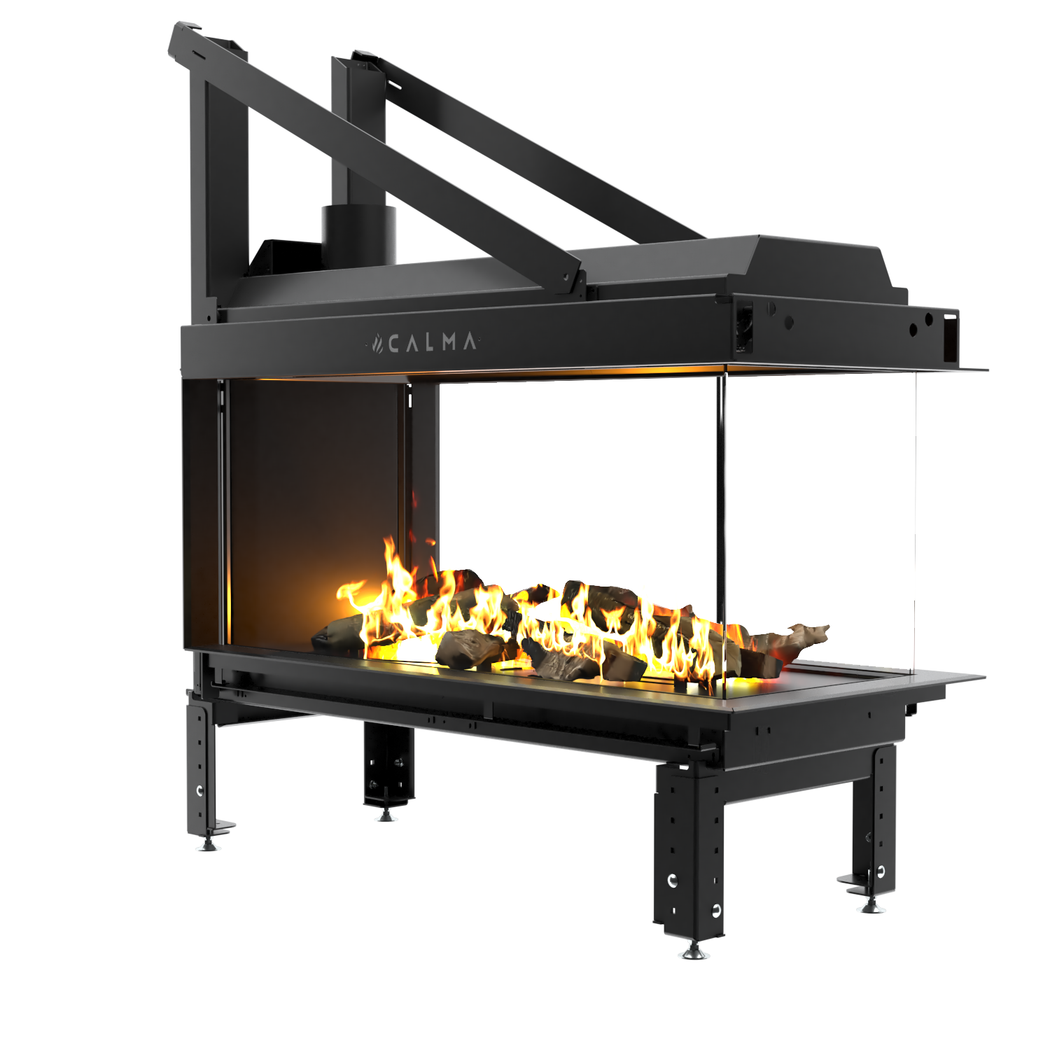 Plynové krby z řady CALMA lze zavěsit na vyhrazené lišty vyráběné na individuální zakázku firmou STALKO.