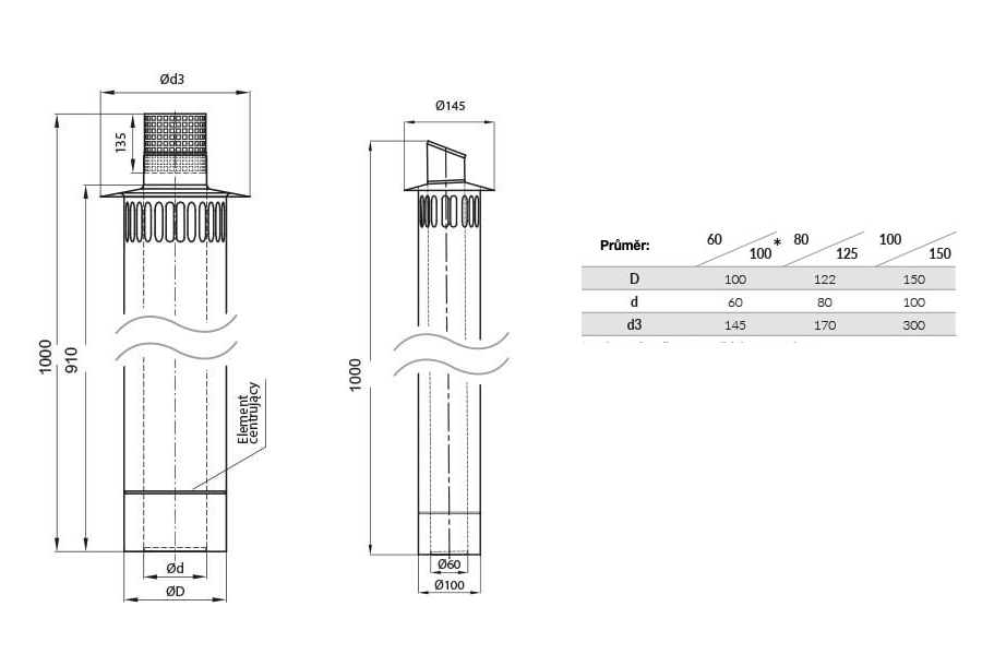 - průměr 60/100mm, 80/125mm, 100/150mm;