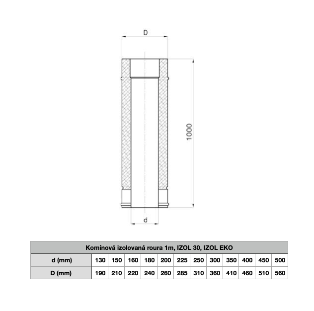 Komínová izolovaná roura 1m, ø 180/240 mm systém IZOL 30