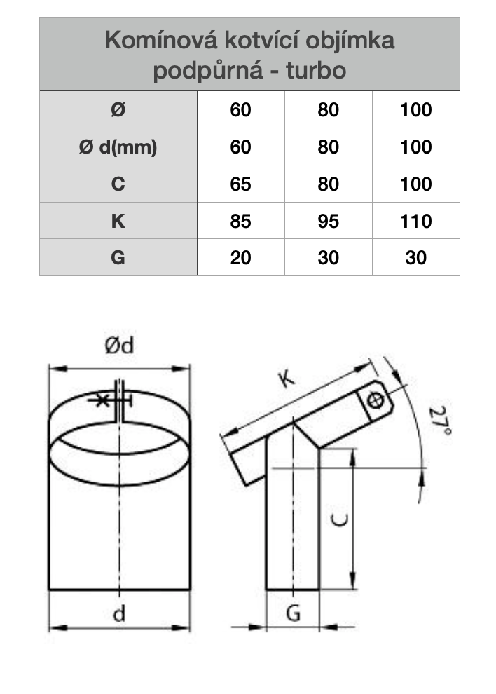 Komínová kotvící objímka podpůrná, ø 60mm - turbo