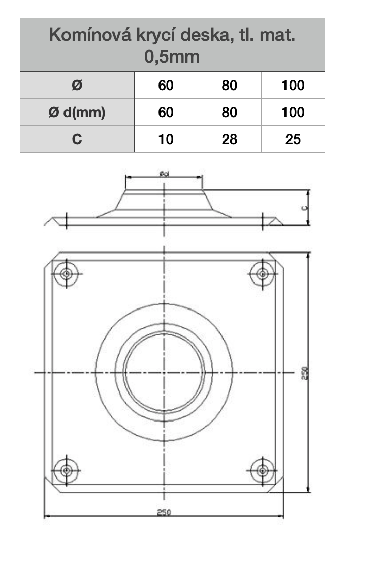 Komínová krycí deska, ø 60mm, tl. mat. 0,5mm