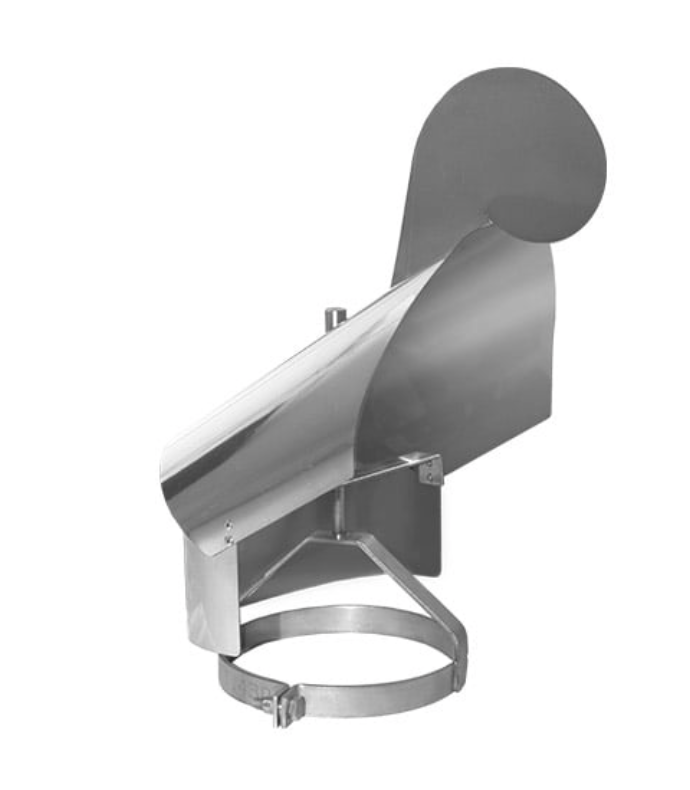 Komínová otočná hlavice je vyrobena z kvalitní nerez oceli. Instaluje se na komínovou vložku, ke které se připevní objímkou z tloušťky materiálu 3mm.