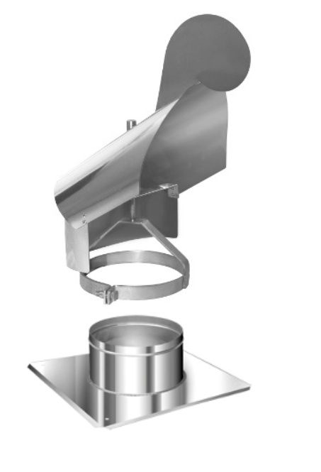 Komínová otočná hlavice s podstavcem je vyrobena z kvalitní nerez oceli. Instaluje se na podstavec, ke které se připevní objímkou z tloušťky materiálu 3mm. Podstavec se ukotví pomocí kotvících šrobů do komínové hlavy.