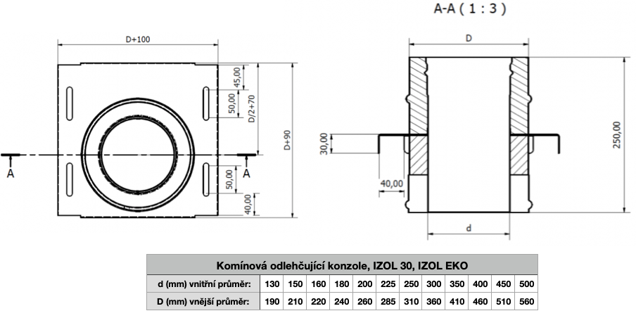 Komínová odlehčující konzole, ø 150/210 mm, systém IZOL EKO 08