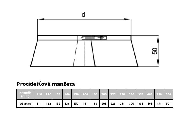 zabraňuje zatékání dešťové vody mezi komínovou vložku a zdivo stávajícího komínu. Tuto manžetu doporučujeme používat v kombinaci s krycí deskou.