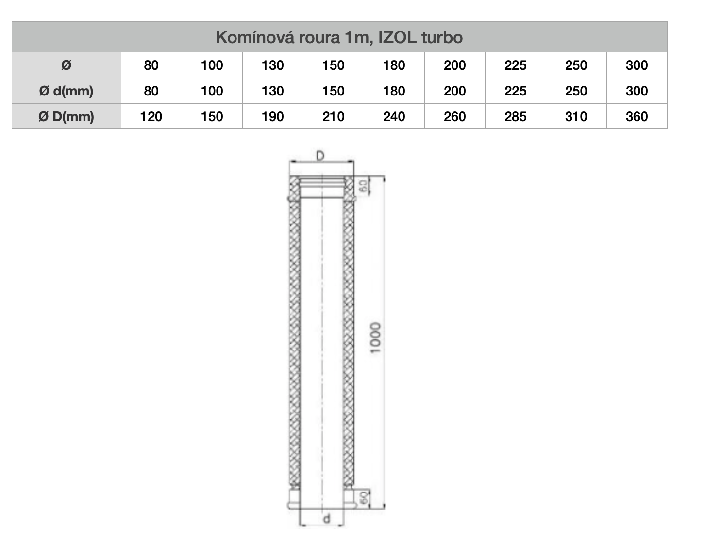 Komínová roura 1m, ø 100mm, IZOL turbo