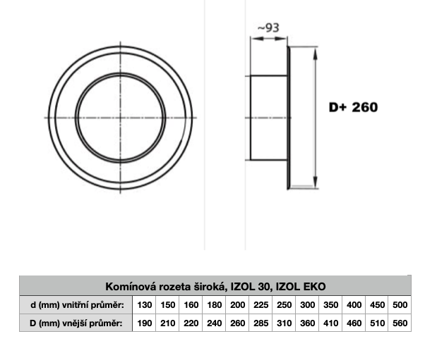 Komínová rozeta široká ø 150/210 mm, systém IZOL 30