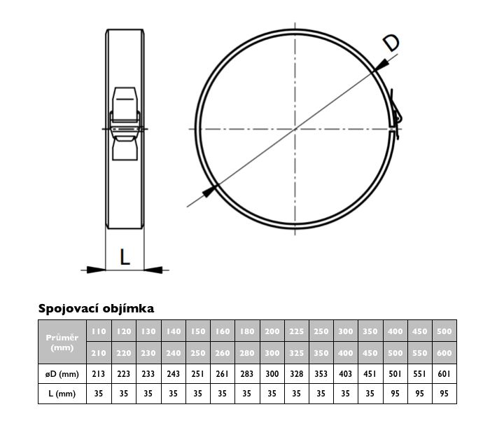 je určená k zajištění spojů mezi jednotlivými díly izolovaného komínu. Tato objímka je kompatibilní s izolovanými komponenty systému Bokra IZOL 50 o vnějším průměru 350 mm.