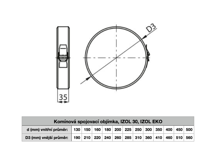 je určená k zajištění spojů mezi jednotlivými díly izolovaného komínu. Tato objímka je kompatibilní s izolovanými komponenty systému Bokra IZOL 30, IZOL EKO 06, IZOL EKO 08 o vnějším průměru 360 mm.