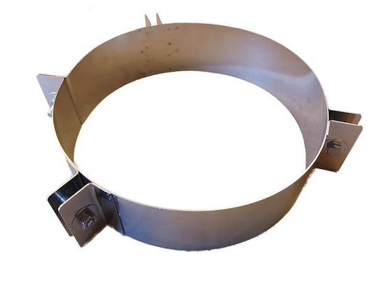 slouží k ukotvení komínového tělesa nad střechou pomocí ocelových lan nebo tyčí. Objímka má po obvodu 3 kotevní oka rozmístěné co 120°. Tuto objímku doporučujeme použít v případě, kdy výška komínu nad střechou přesáhne více než 2m od posledního kotvení (stěnové objímky).