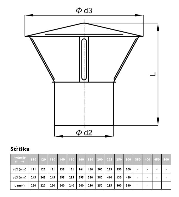 primárně zamezuje vniku dešťové vody do komínu. Instaluje se zasunutím do komínové roury. Tato stříška je kompatibilní se všemi nerezovými systémy Bokra daného průměru.