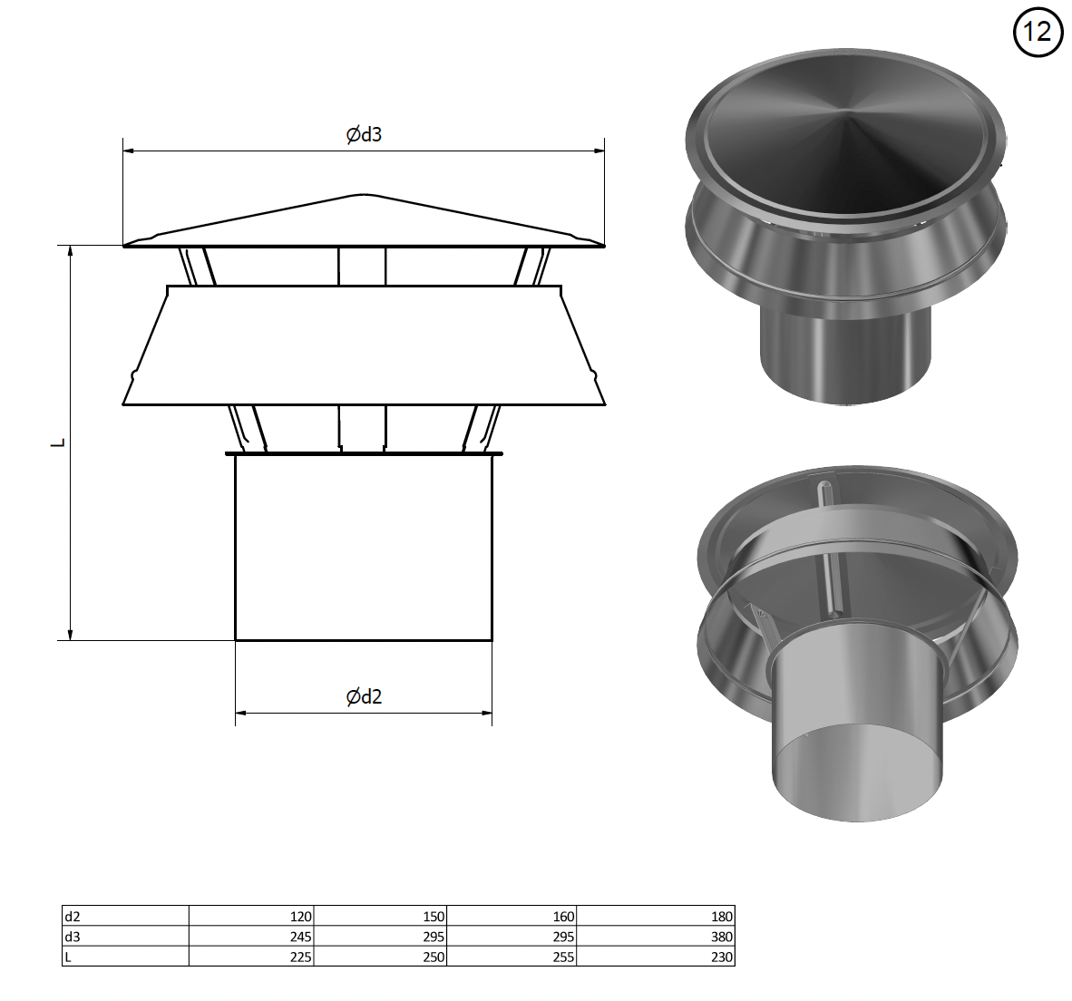 primárně zamezuje vniku dešťové vody do komínu. Instaluje se zasunutím do komínové roury. Tato stříška je kompatibilní se všemi nerezovými systémy Bokra daného průměru.