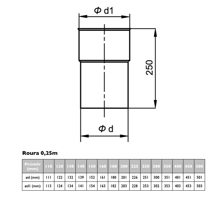 je určená k odvádění spalin od spotřebičů na všechny typy paliv. Tato roura je určená pro podtlakový provoz a je opatřena hrdlem výšky 100mm. Je možné ji libovolně zkracovat.