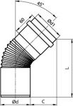 Komínová vložka - koleno 45° - ø 60mm, tl. mat. 0,5mm - turbo