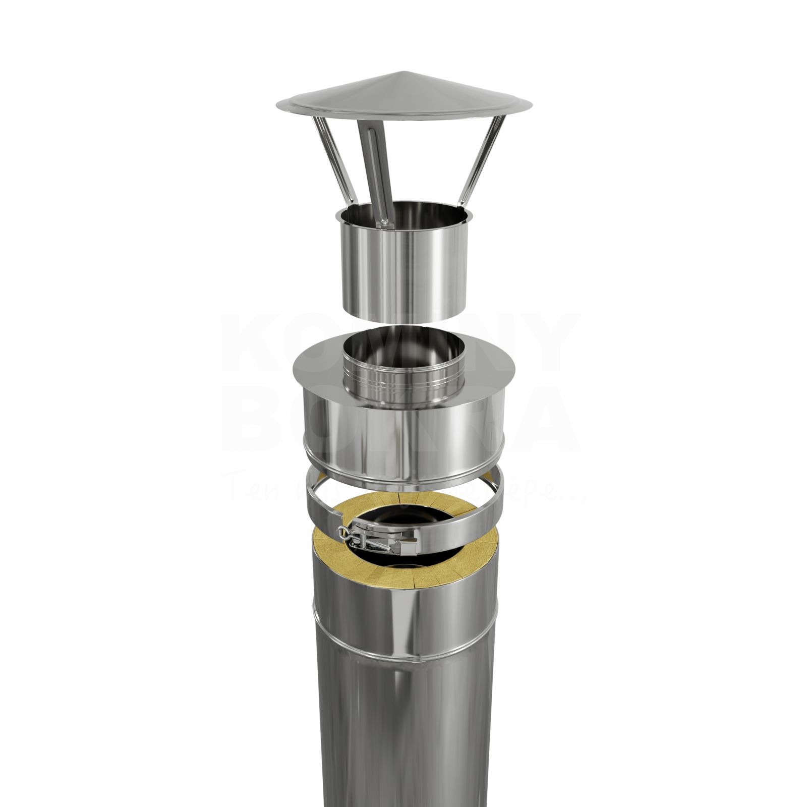se instaluje na poslední komínovou izolovanou rouru a zabraňuje zatékání dešťové vody do komínové izolace. Na toto ukončení lze instalovat komínovou stříšku zásuvnou, stříšku univerzální, hlavici Tvist a hlavici s figurkou.