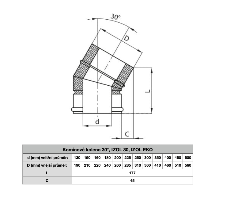 Komínové koleno 30° ø 180/240 mm, systém IZOL EKO 06