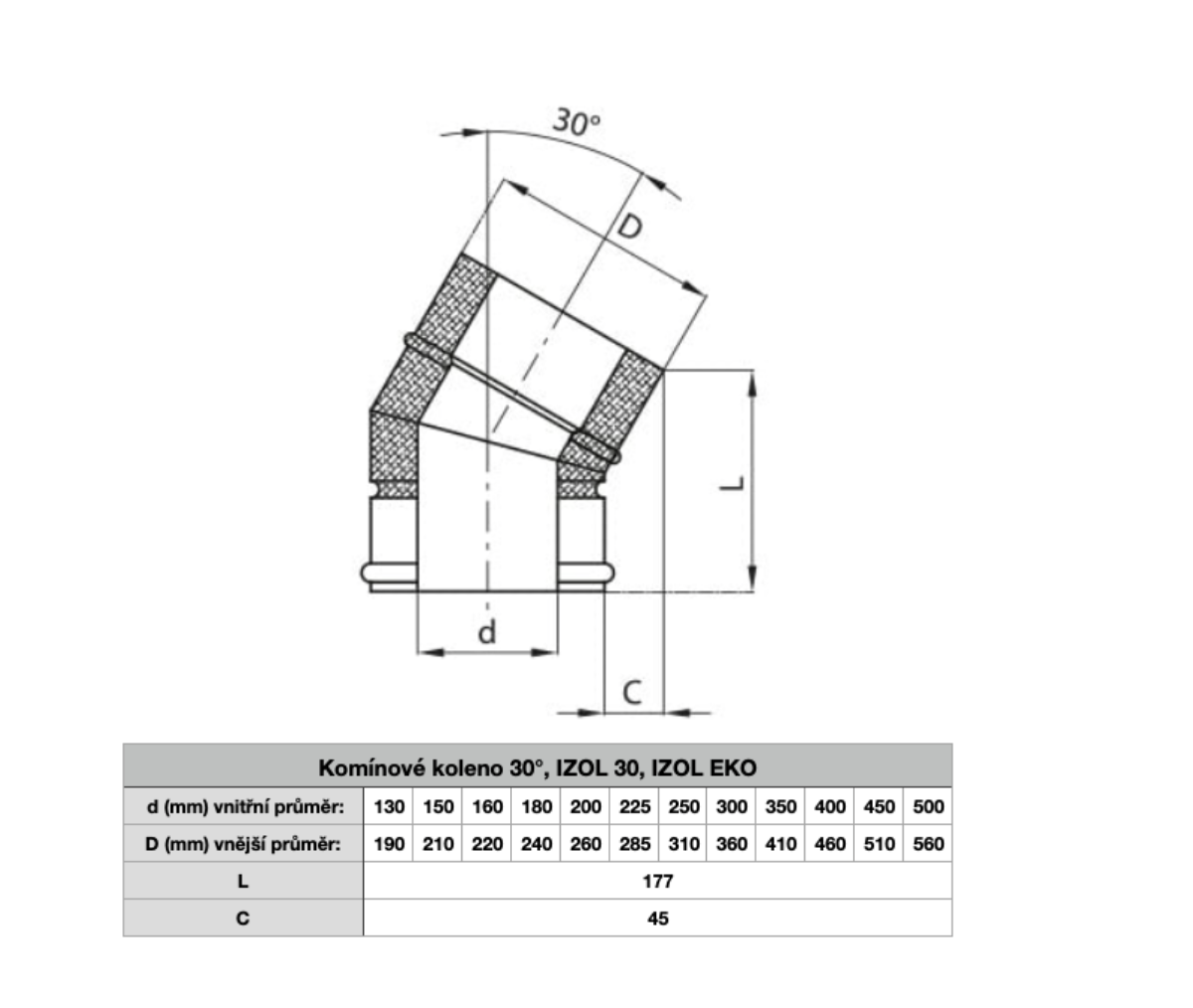 Komínové koleno 30° ø 180/240 mm, systém IZOL 30