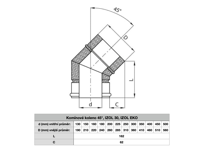 Komínové koleno 45° ø 225/285 mm, systém IZOL 30