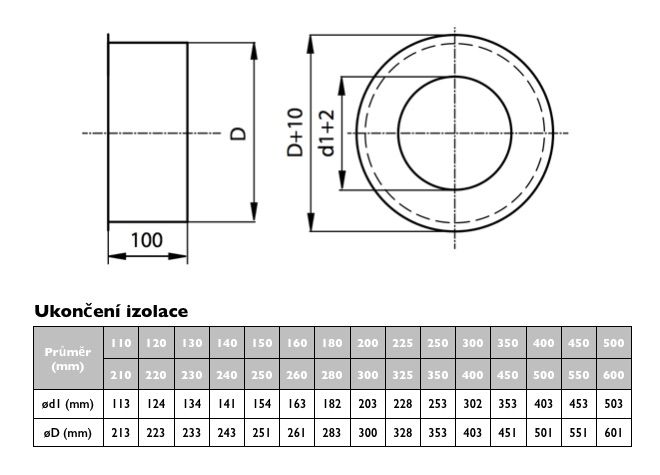 je pohledový prvek který slouží k zakrytí izolace mezi pláštěm a vnitřní vložkou izolovaného komínu (nejčastěji t-kusu nebo prostupujcí roury). Toto ukončení nelze použít jako horní ukončení!