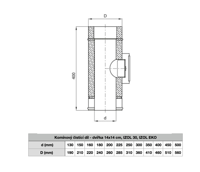 slouží ke kontrole spalinové cesty a jako vybírací otvor pro případné nečistoty usazené v komínu. Čistící díl je opatřen dvířky s rozměrem 140x140 mm. Součástí těchto dvířek je klíč pro snadné otevírání.
