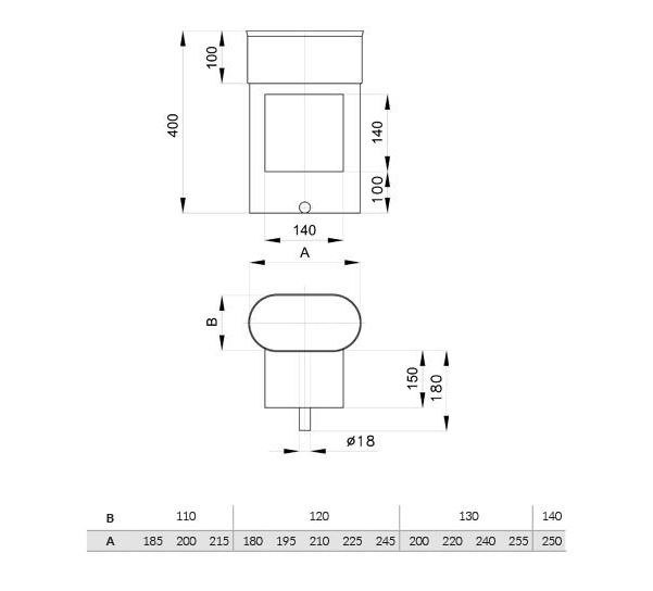 Komínový čistící díl s KJ dvířka 140x140 - rozměr 120x225mm (= ø 180mm)