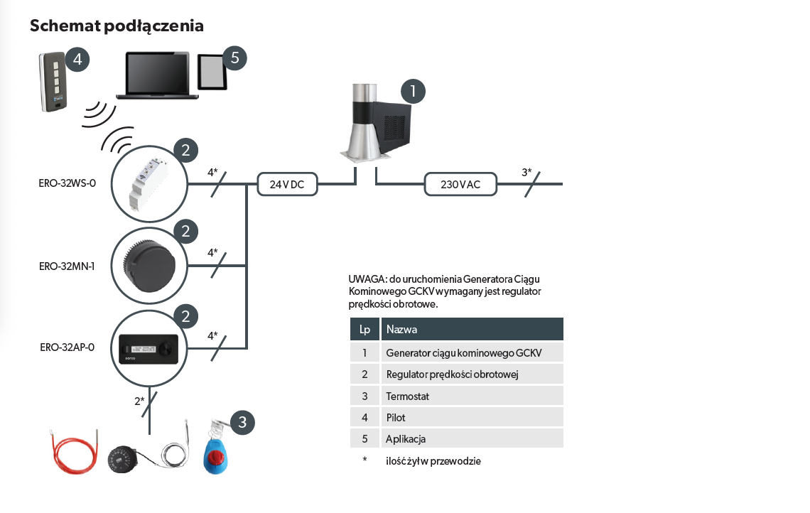 Komínový ventilátor vytváří a stabilizuje komínový tah ve všech typech komínů (na plynná, kapalná i pevná paliva). Násada se montuje na vrch komínu. K ventilátoru doporučujeme použít regulátor otáček. Ventilátor zvyšuje komínový tah bez ohledu na výšku komína, typ komína nebo rychlost větru. Ventilátor lze rozdělit na dvě části, což usnadňuje přístup do komína k čištění nebo revizi. Velkou výhodou ventilátoru je, že v případě výpadku proudu se spalinová cesta nezablokuje.