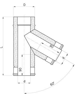 Komínový izolovaný T-kus 60°, ø 150/210 mm systém IZOL EKO 08