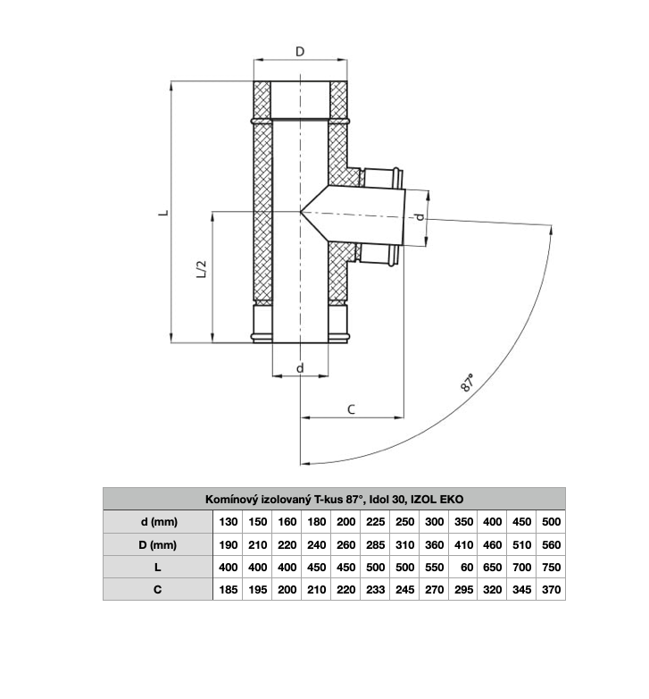 Komínový izolovaný T-kus 90°, ø 225/285 mm systém IZOL 30