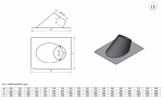 je určen k oplechování nerezového izolovaného komínu o vnějším průměru 300 mm. Tento prostup je určen pro střechy se sklonem 20-50° (neprofilované krytiny: rovný plech, asfaltový šindel, střešní fólie). Součástí střešního přechodu je protidešťová manžeta.