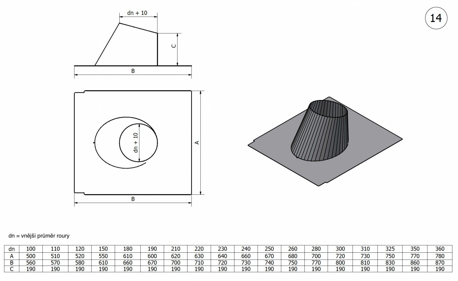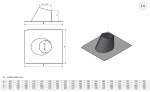je určen k oplechování nerezového izolovaného komínu o vnějším průměru 230 mm. Tento prostup je určen pro střechy se sklonem 5-30° (neprofilované krytiny: rovný plech, asfaltový šindel, střešní fólie). Součástí střešního přechodu je protidešťová manžeta.