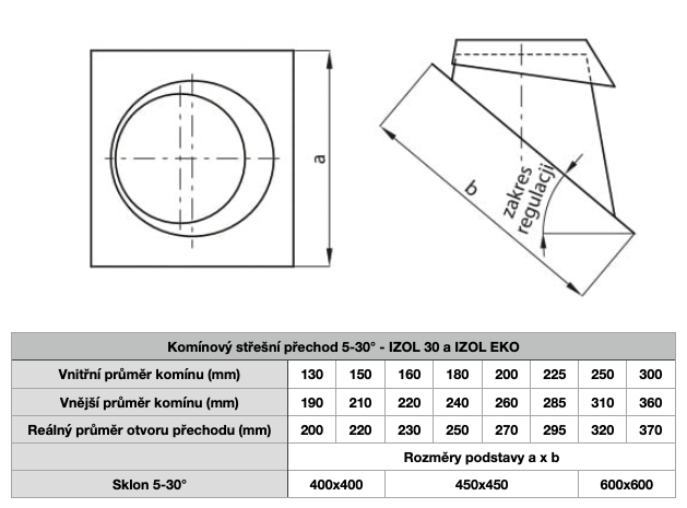 Komínový střešní přechod 5-30° pro ø 150/210 mm, IZOL 30