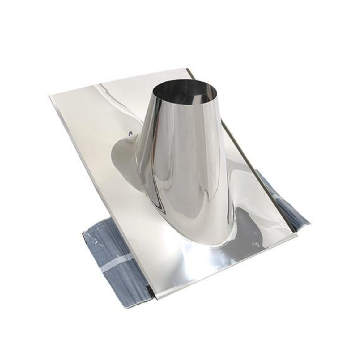 je určen k oplechování nerezového izolovaného komínu o vnějším průměru 220 mm. Chrání otvor mezi střešní krytinou a komínem a zabraňuje zatékání dešťové vody do konstrukce střechy. Součástí střešního přechodu je i protidešťová manžeta. Pomocí olověného pásu vytvarujeme profil střešní krytiny. Tento prostup je určen pro střechy se sklonem 5-30° (profilované krytiny: tašky, vlnitý plech, atd.).