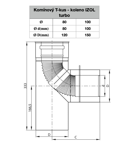 Komínový T-kus - koleno, ø 80mm, IZOL turbo