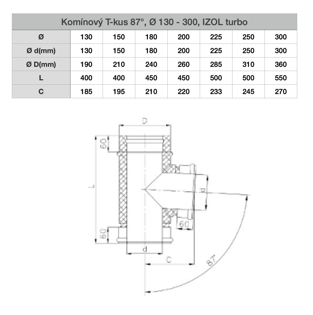 Komínový T-kus 90°, ø 200mm, IZOL turbo